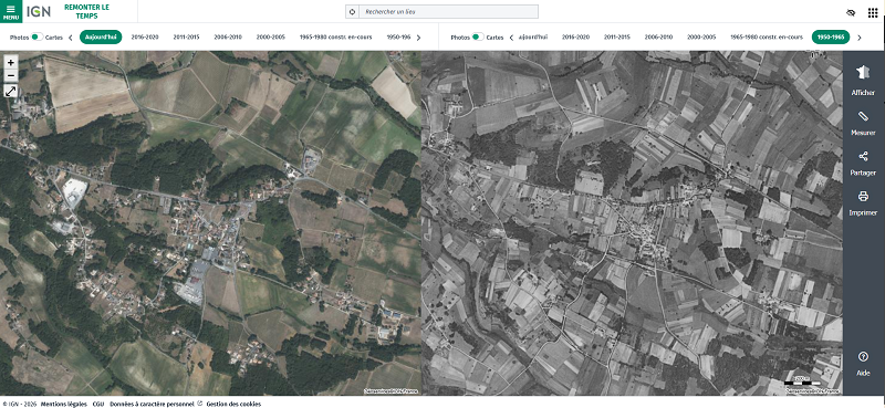 Petit voyage dans le temps grâce aux cartes IGN.Rendez-vous sur le site remonterletemps.ign.fr pour visualiser l’évolution de l’infrastructure urbaine d’Orignolles